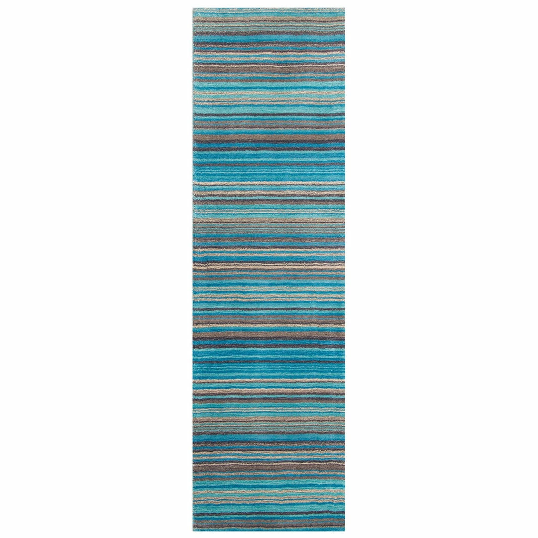 Xrug Blue Rug 100% Wool Handmade Modern Striped Living Room Bedroom Carpet Thick Mat Runner New