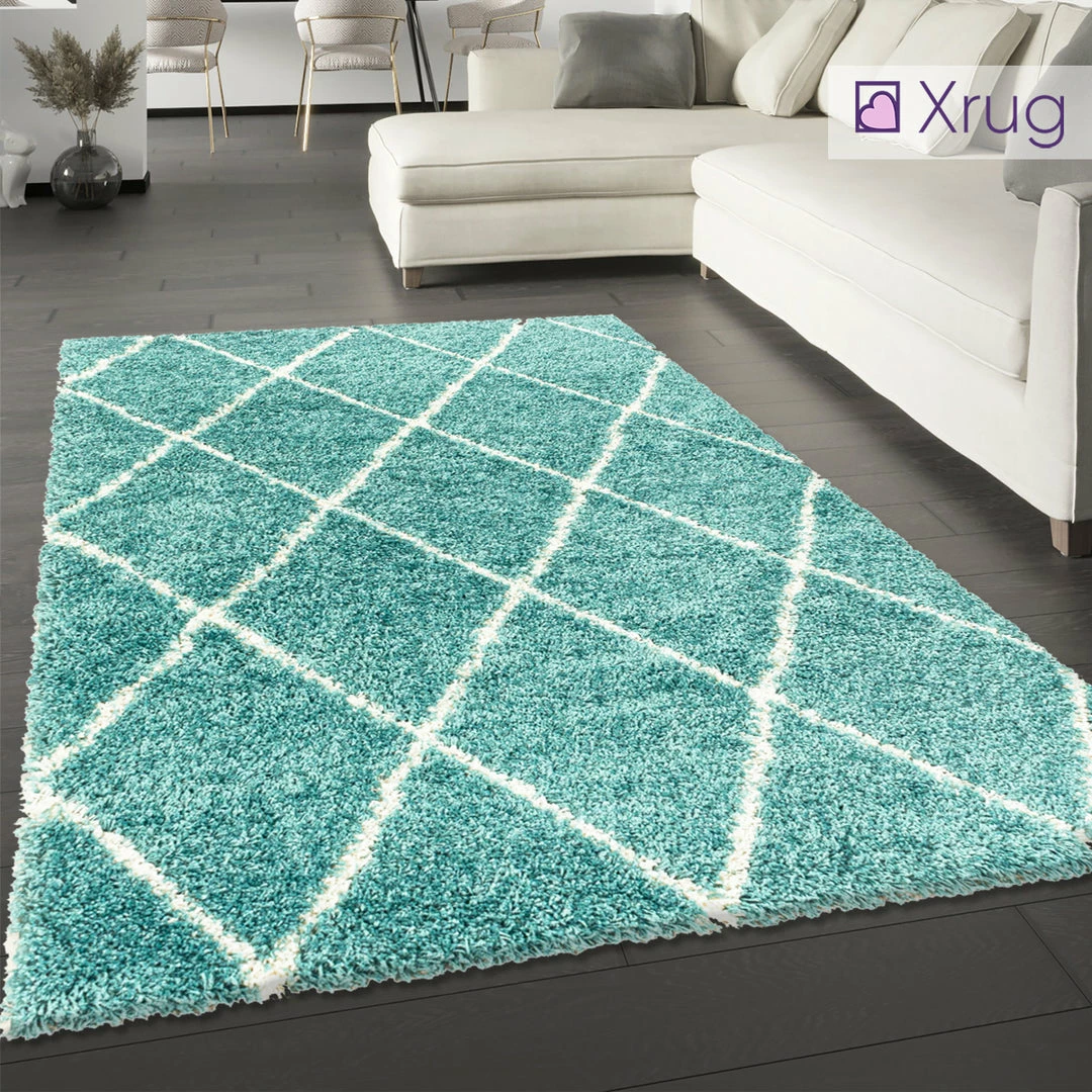Xrug Blue Rug Teal Fluffy Shaggy Carpet Soft Thick Large Small Dimaond Carpet For Living Room Bedroom