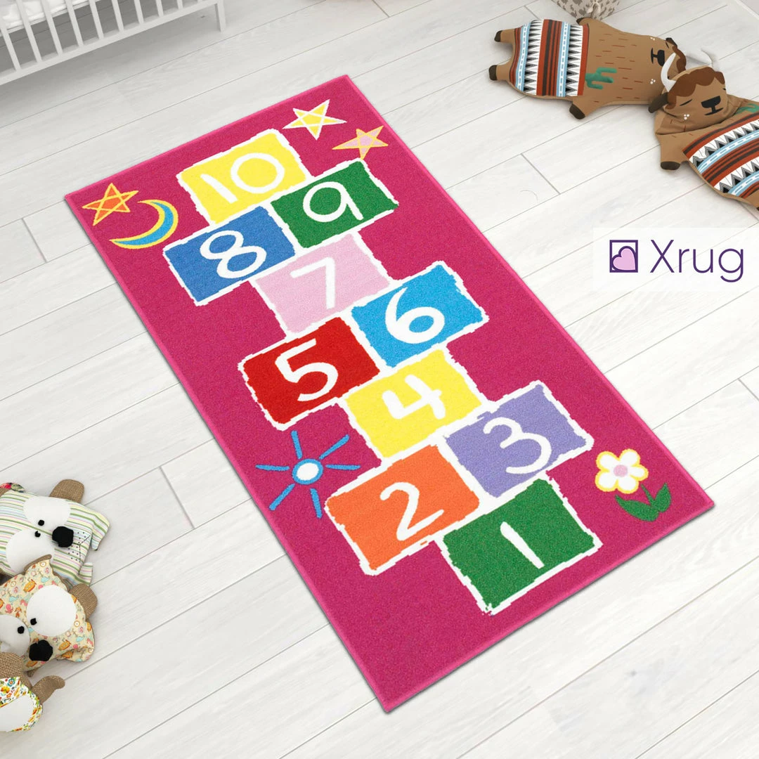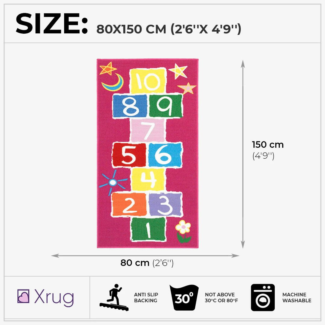 Xrug Kids Rug Girls Hopscotch NON SLIP MACHINE WASHABLE Pink Nursery Play Mat For Girls Bedroom Playroom 80x150cm