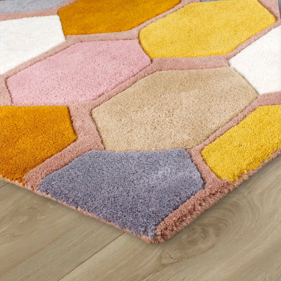 Modern Handtufted Rugs made in India from 100% Wool Natural yarn and featuring Hand Carved geometric patterns in trendy colours. This collection is high quality, excellent value and will bring a style statement to any modern home. These rugs are Thick and Heavy, they have Cotton Backing.
