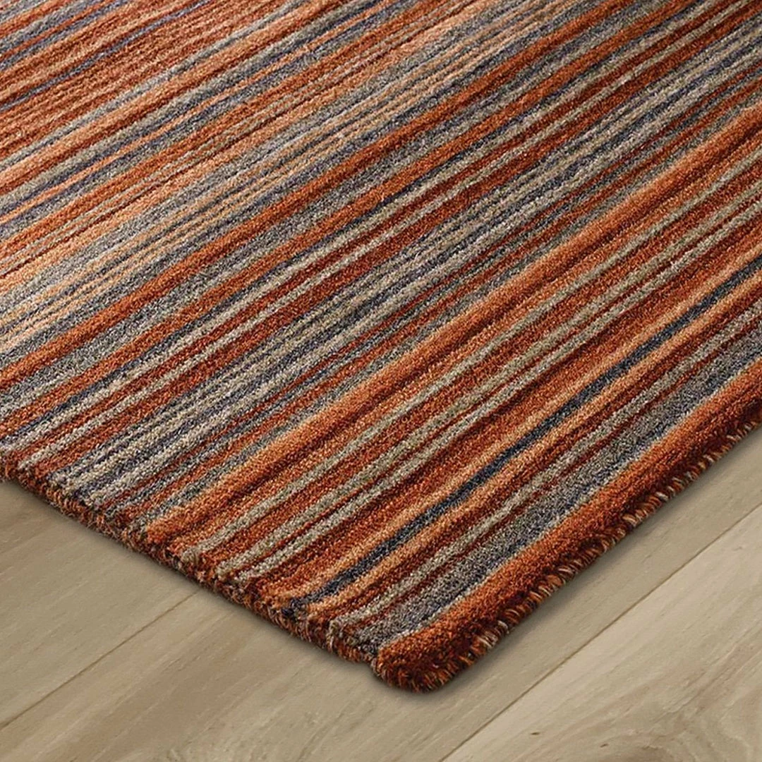 Xrug Orange Rug 100% Wool Handmade Modern Striped Living Room Bedroom Carpet Thick Mat Runner New
