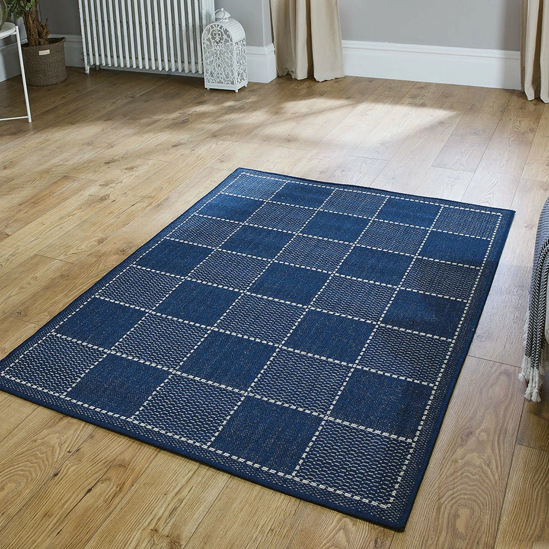 Xrugs Anti Slip Rug Living Room Navy Blue Check Flat Weave Small Large Runner Carpet Mat