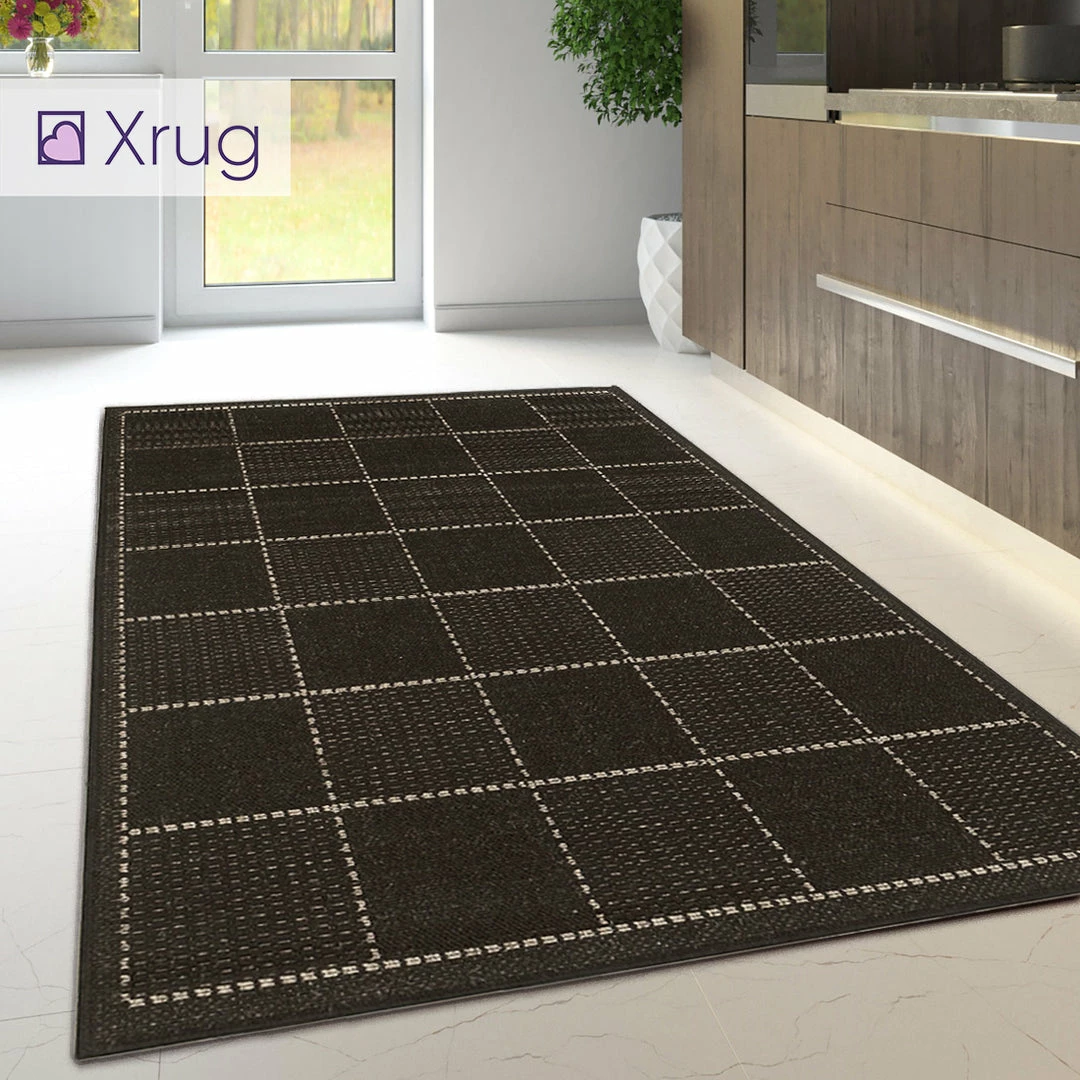 Xrugs Black Kitchen Rug Non Slip Large Small Runner Check Flat Weave Heavy Duty Carpet