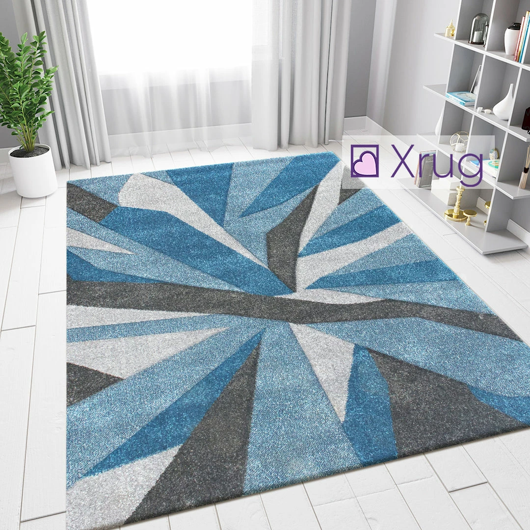 Xrugs Blue And Grey Rug Abstract Contour Cut Pattern Mat Modern Living Room Carpet New