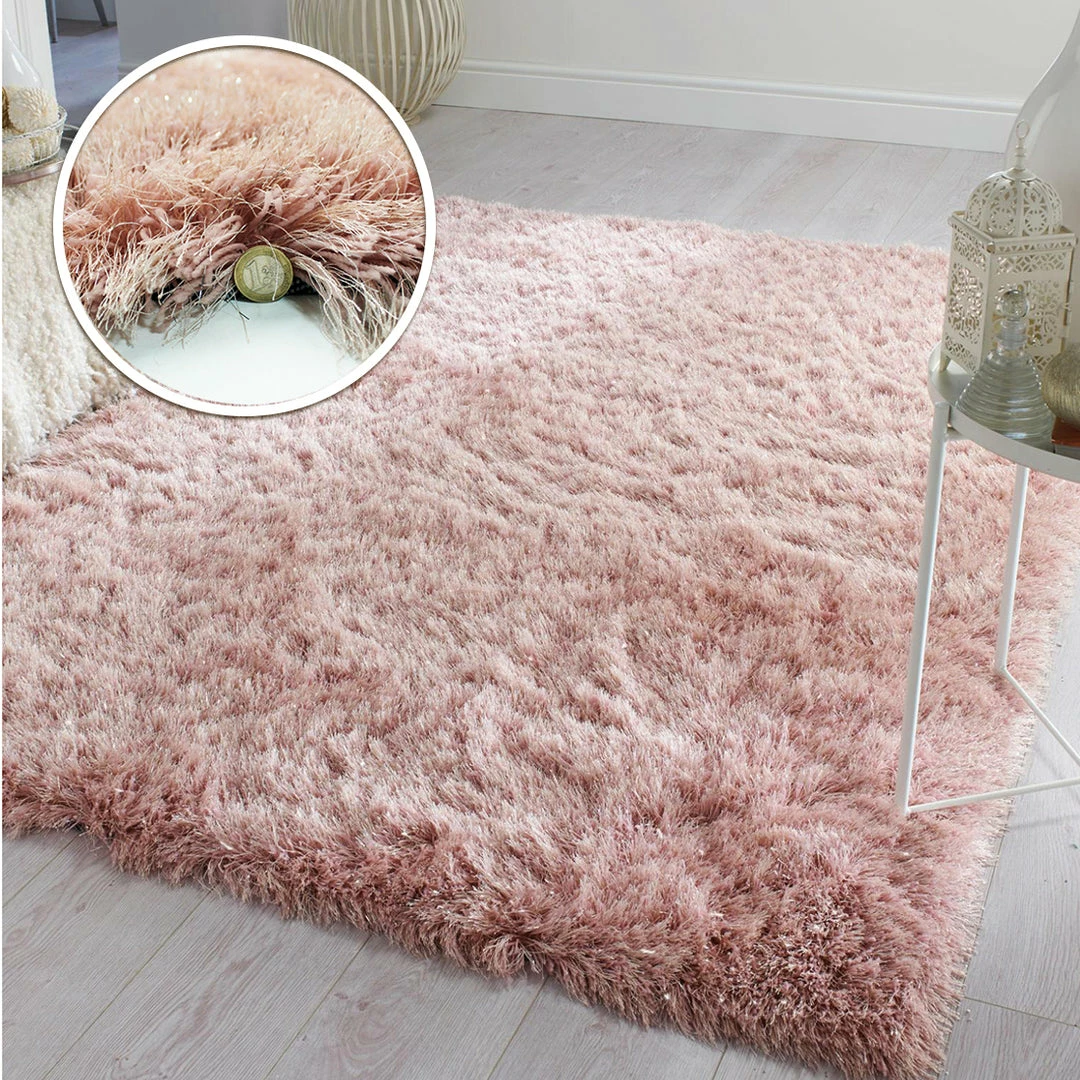 Xrugs Blush Pink Rug Soft Fluffy Sparkle Shaggy Carpet Woven Thick Rug Mat Large Small Modern