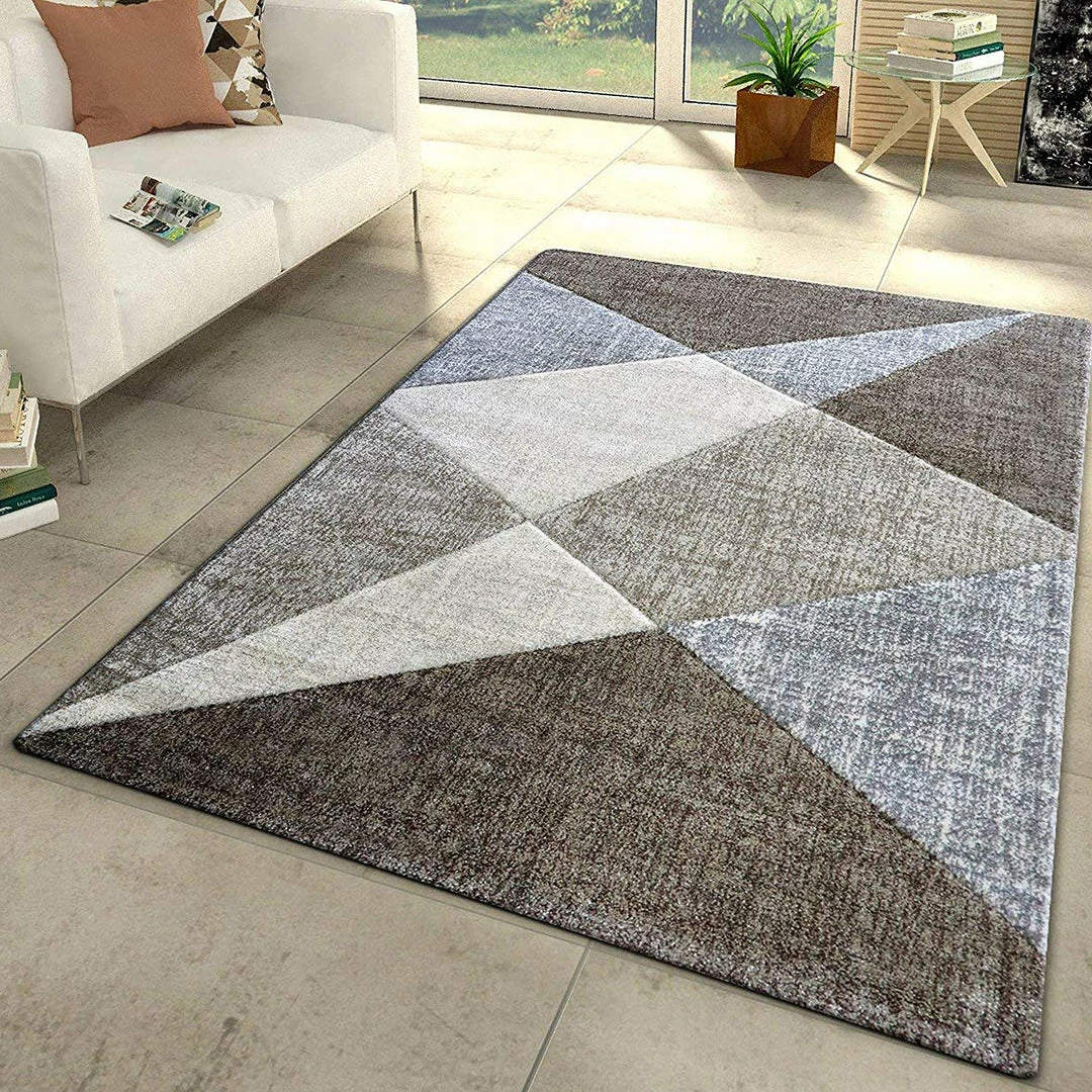 Xrugs Brown Grey Rug For Living Room Lounge Bedroom Modern Geometric Pattern Carpet