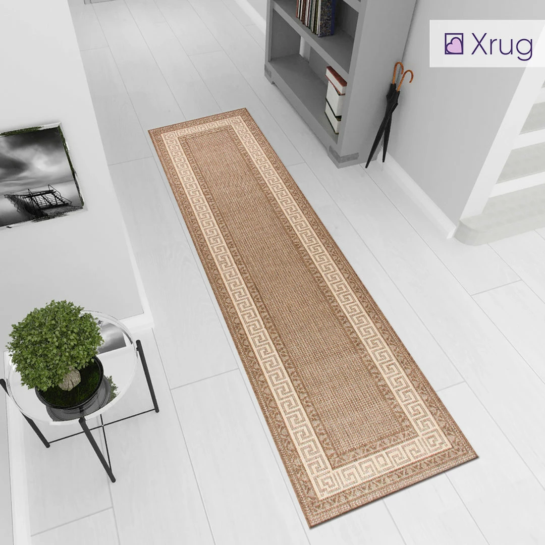 Xrugs Brown Runner Rug Non Slip Greek Key Border Style Kitchen Hallway Long Runner Durable Carpet Mat