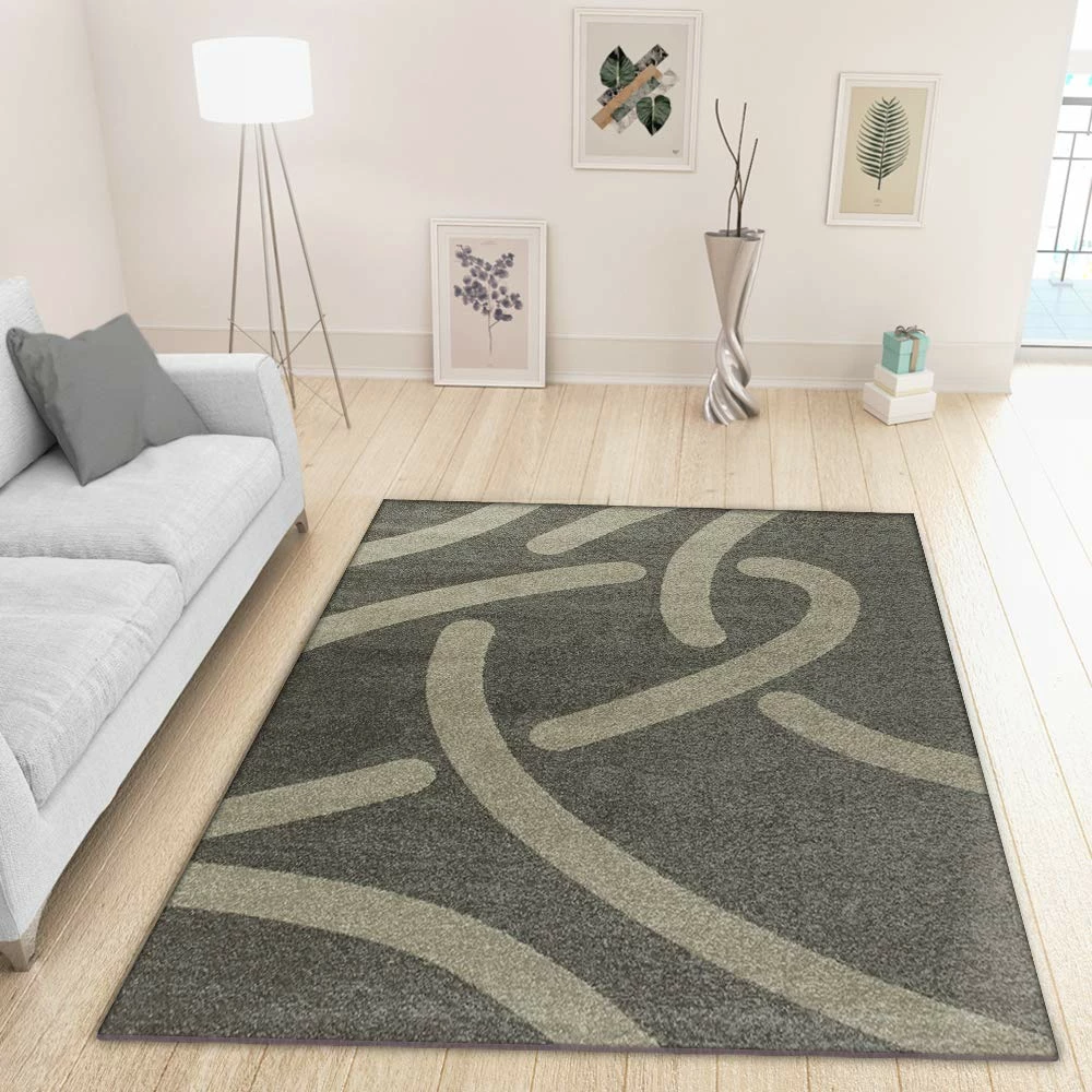 Xrugs Contemporary Rug For Bedroom Modern Living Room Or Dining Room With Abstract Geometric Patterned Grey And Silver Short Pile Woven Carpet Soft Mat