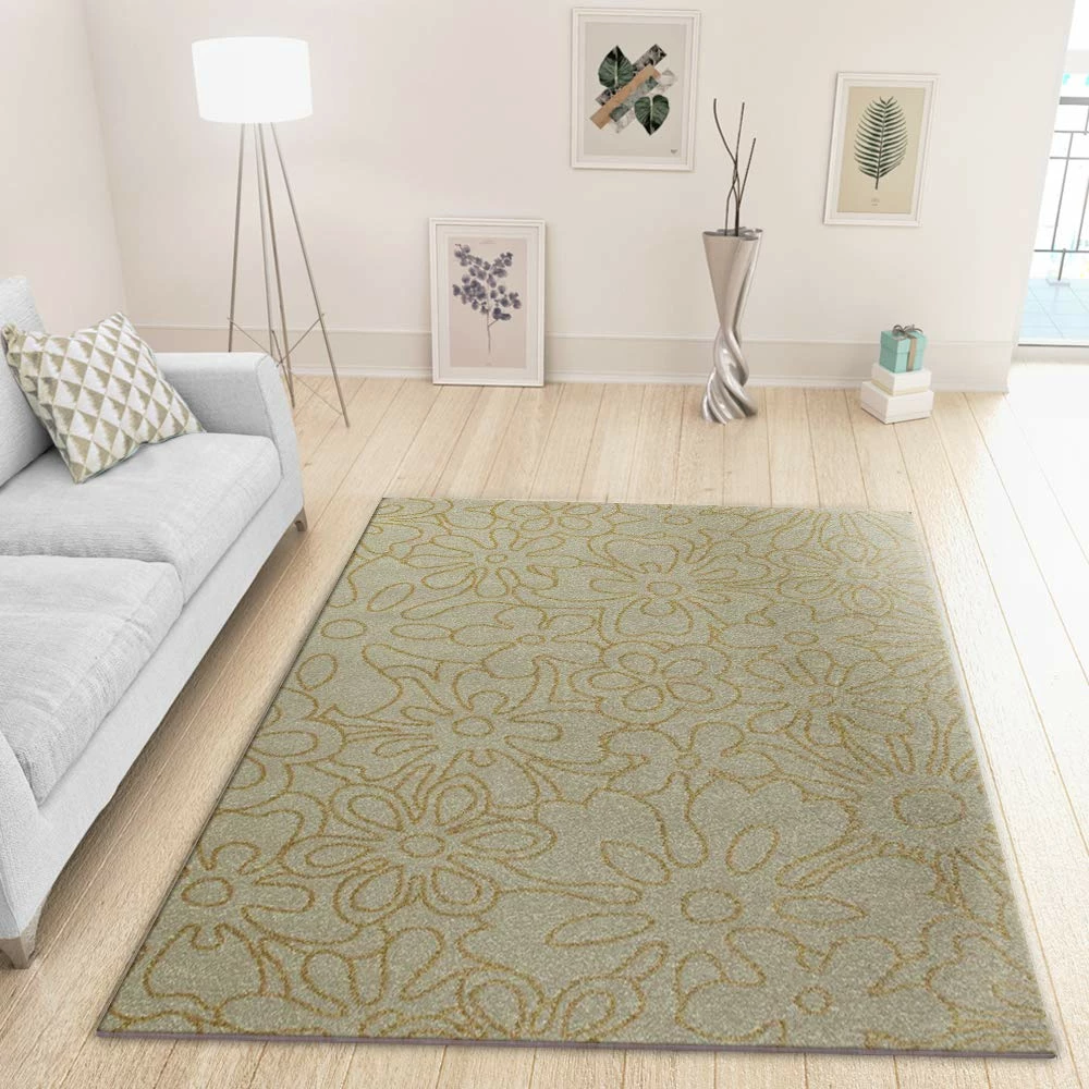 Xrugs Contemporary Rug For Living Room Or Bedroom With Exclusive Floral Pattern In Ivory And Ochre Сolours Soft Polypropylen Short Pile Woven Carpet Mat