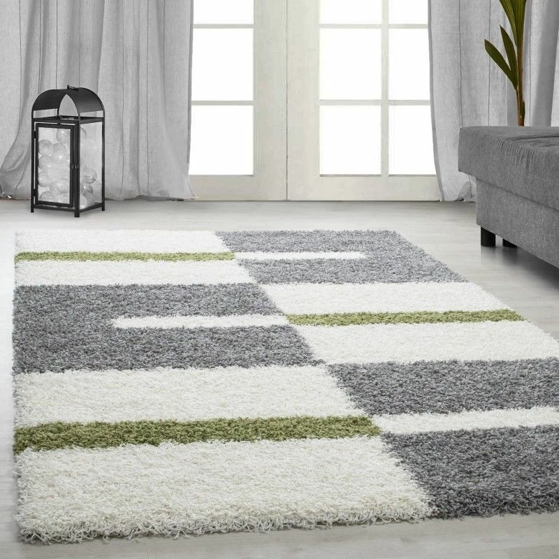 Xrugs Fluffy Rugs Deep Pile Shaggy Cream Grey Green Geometric Carpet Living Room Mats