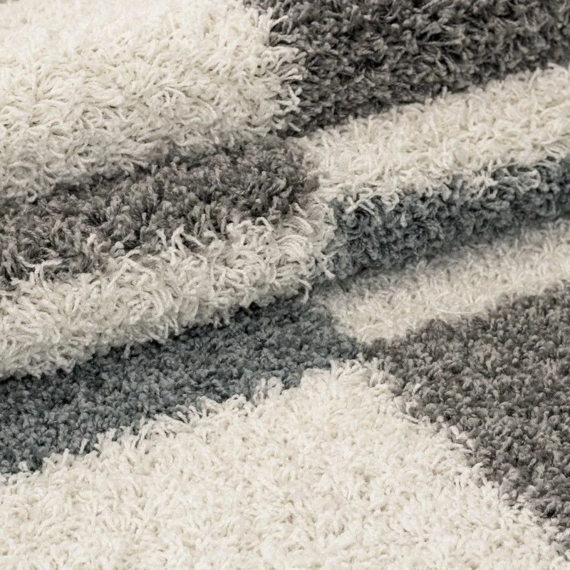 Xrugs Fluffy Shaggy Rug White Grey Blue Geometric Pattern Mat Living Room Hall Carpets