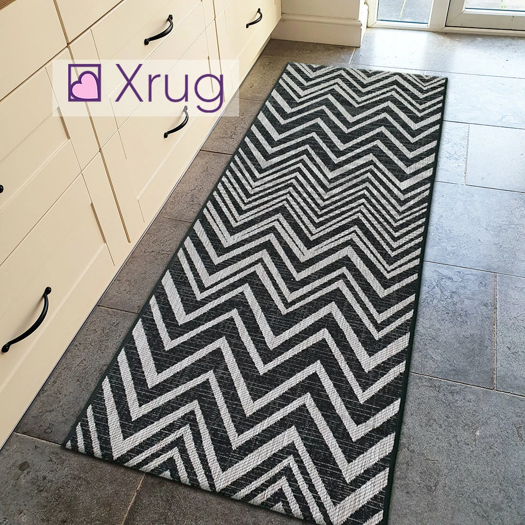 Xrugs Grey Black Zig Zag Rug Flat Weave Jute Look Chevron Carpet Small Large Long Kitchen Hallway Runner Indoor Mat