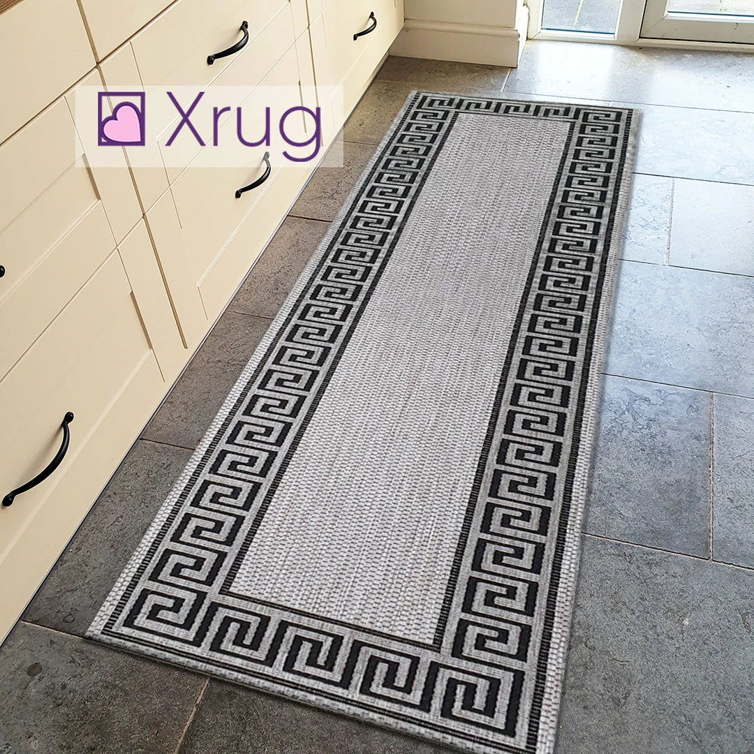 Xrugs Grey Rug Greek Key Style Pattern Jute Look Flat Weave Kitchen Small Large Runner