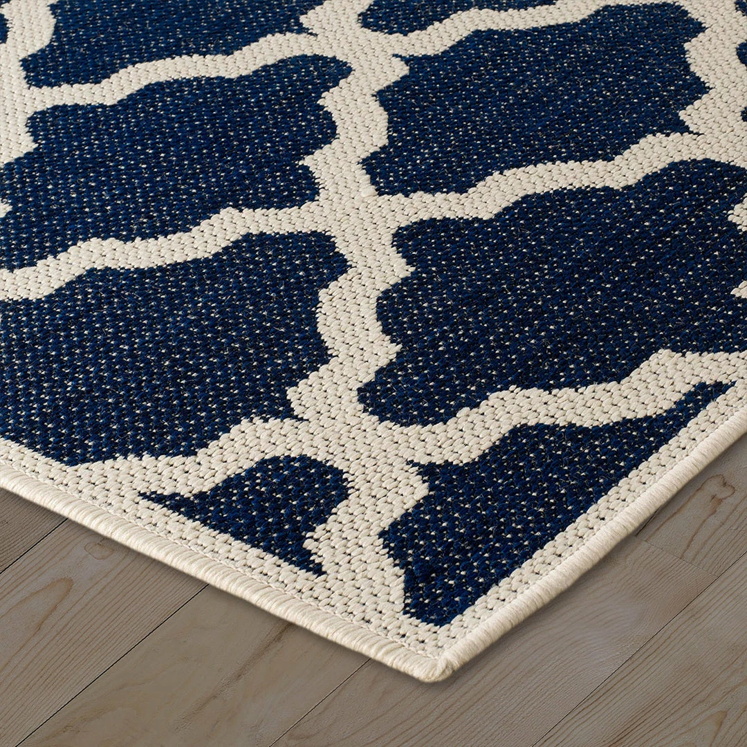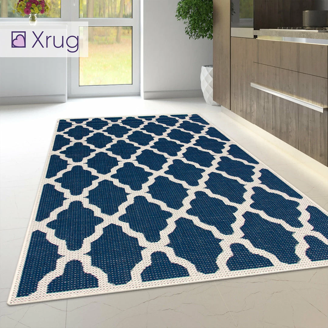 Xrugs Heavy Duty Kitchen Rug Navy Blue Moroccan Trellis Sisal Look Small Large Carpet Mat Runner