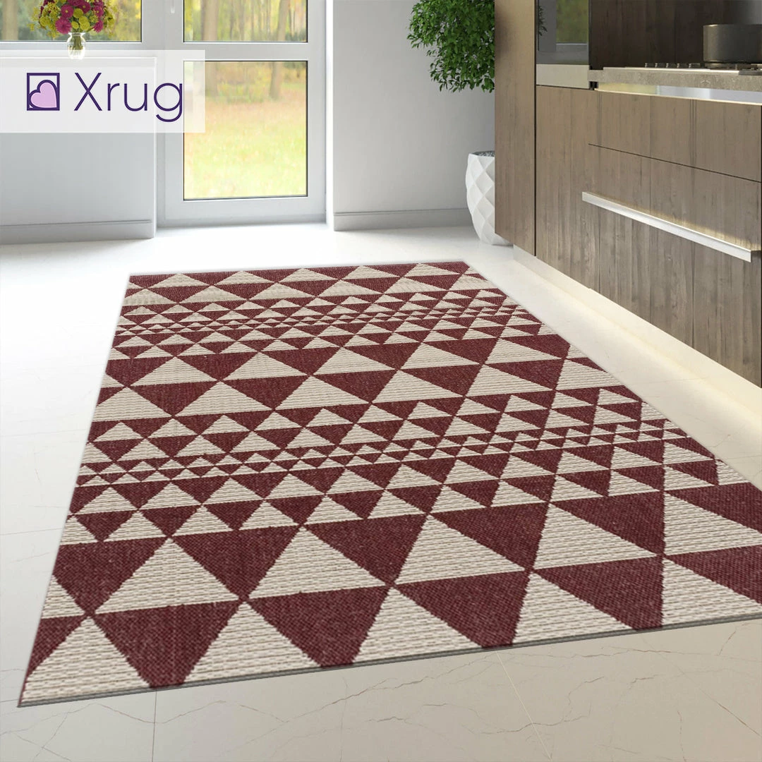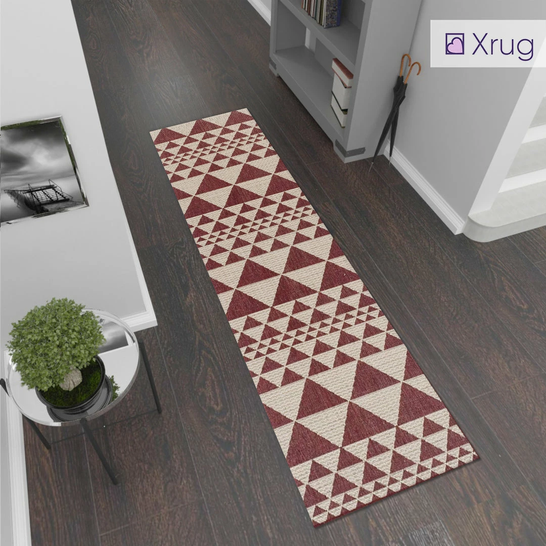 Xrugs Heavy Duty Kitchen Rug Non Slip Red Beige Geometric Fat Weave Carpet Mat Small Large Runner Modern