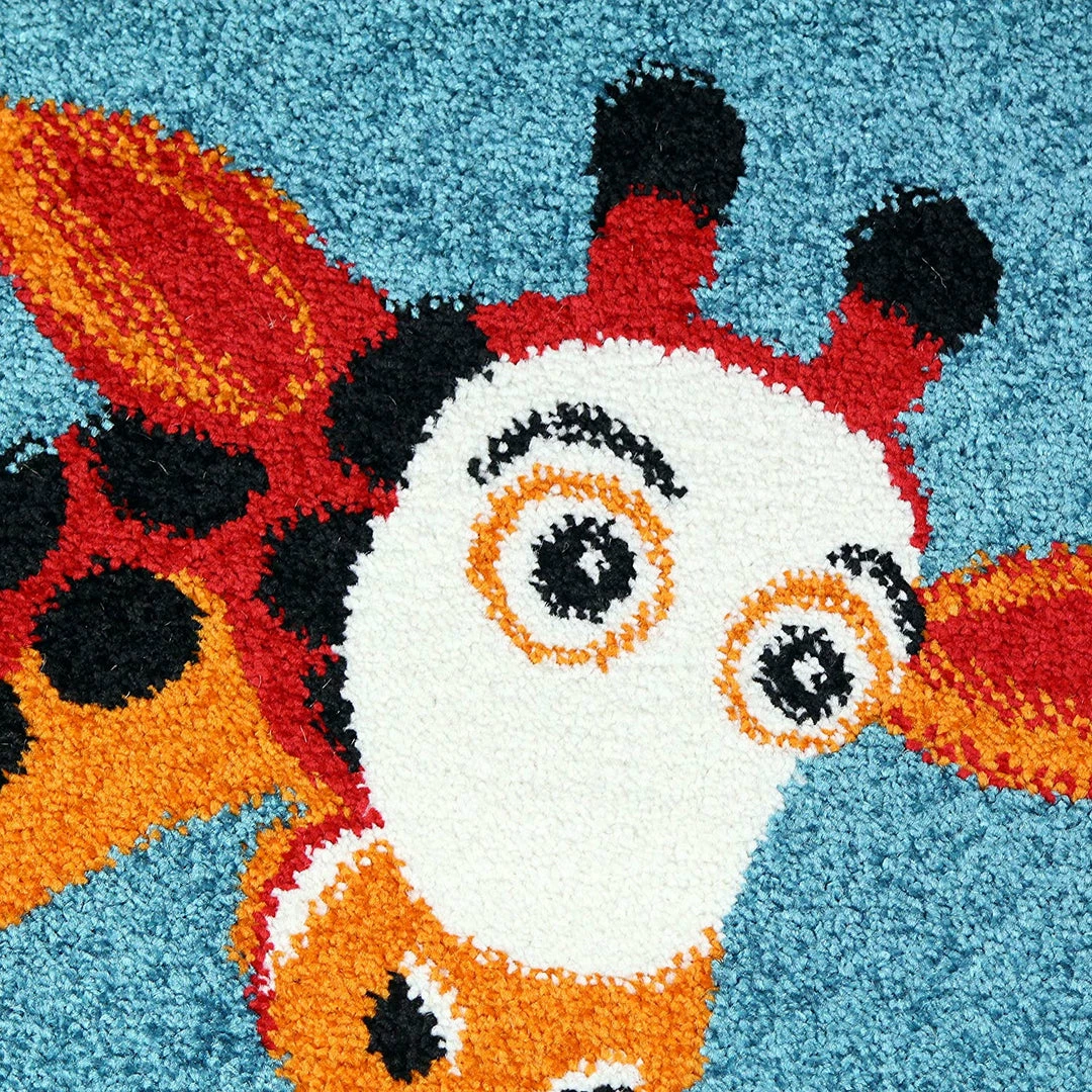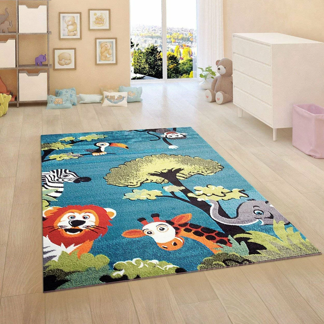 - Design: Blue Rug with Exclusive Jungle Animal Pattern (Zoo) for Girl and Boy