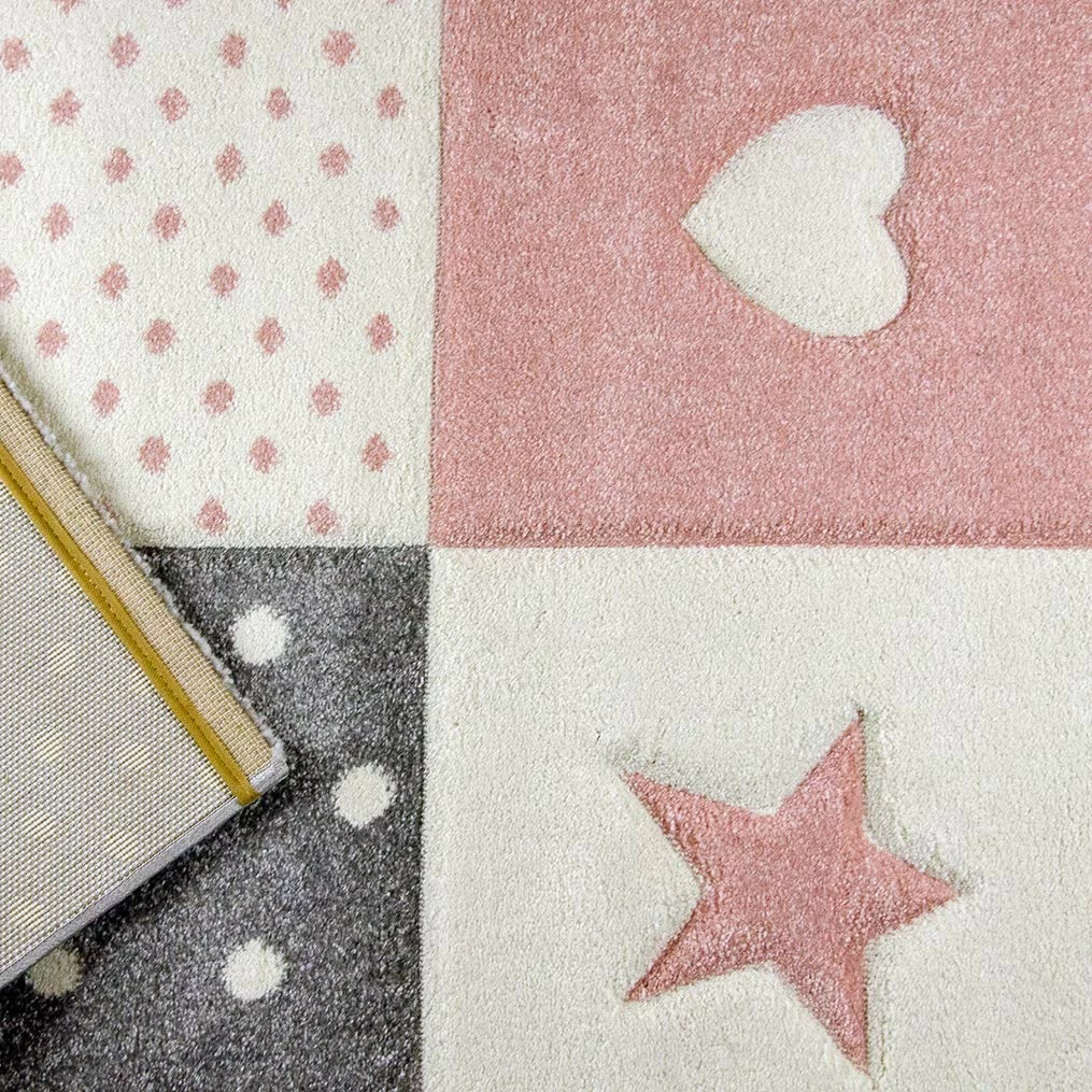 - Design: Grey Pink Checkered Rug with Hand-Carved Stars and Hearts Pattern (Trendy Pattern for Girls)