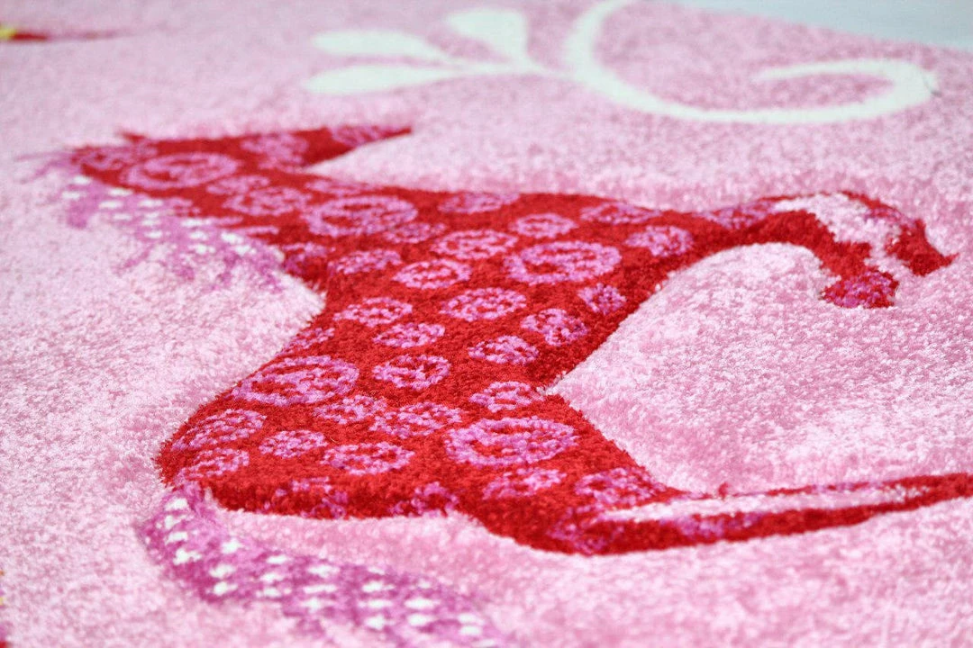 - Design: Pink Rug with Carved Animal Pattern Horse and Heart (Trendy Pattern for Girls)
