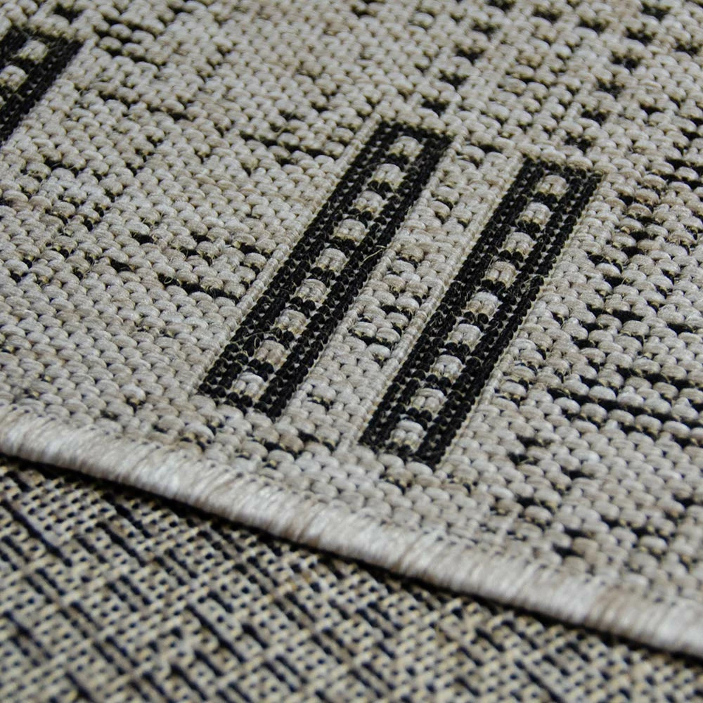 Xrugs Kitchen Rug Grey Black Border Pattern Hard Wearing Flat Weave Carpet Indoor Floor Mat