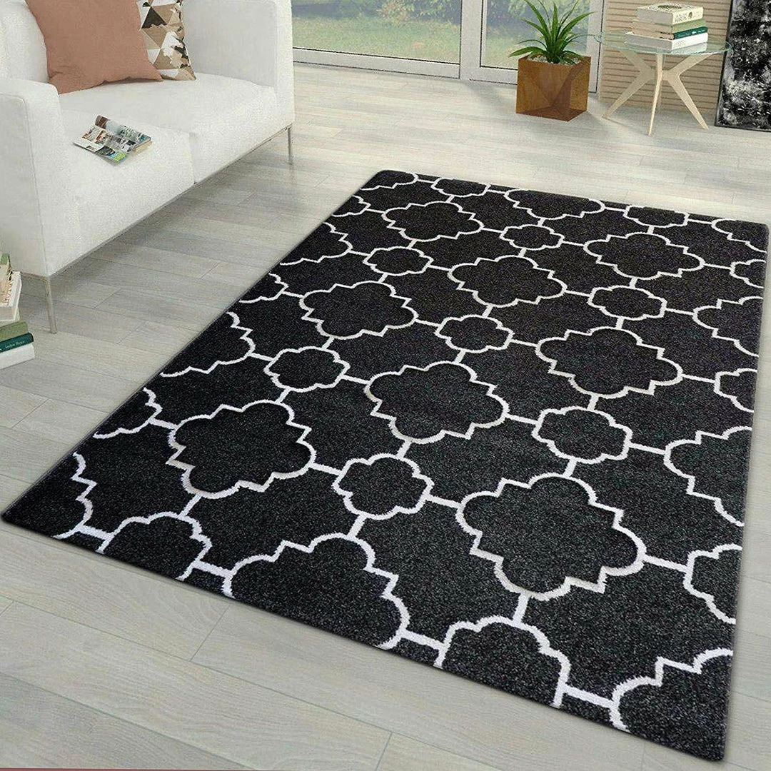 - Quality Black White Rug for Bedroom, Living Room or Hall/ Soft Short Pile Woven Thick Carpet Mat
