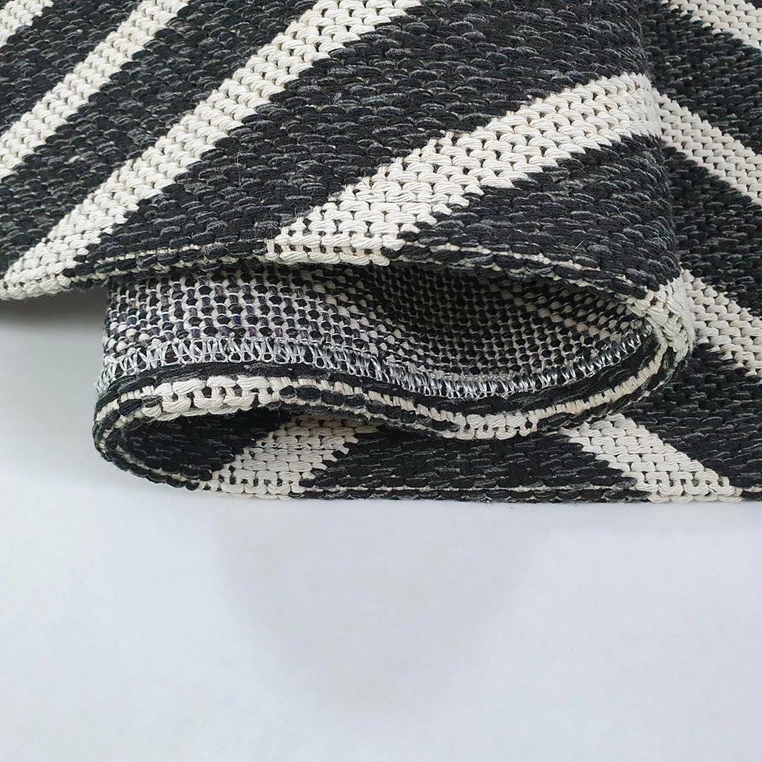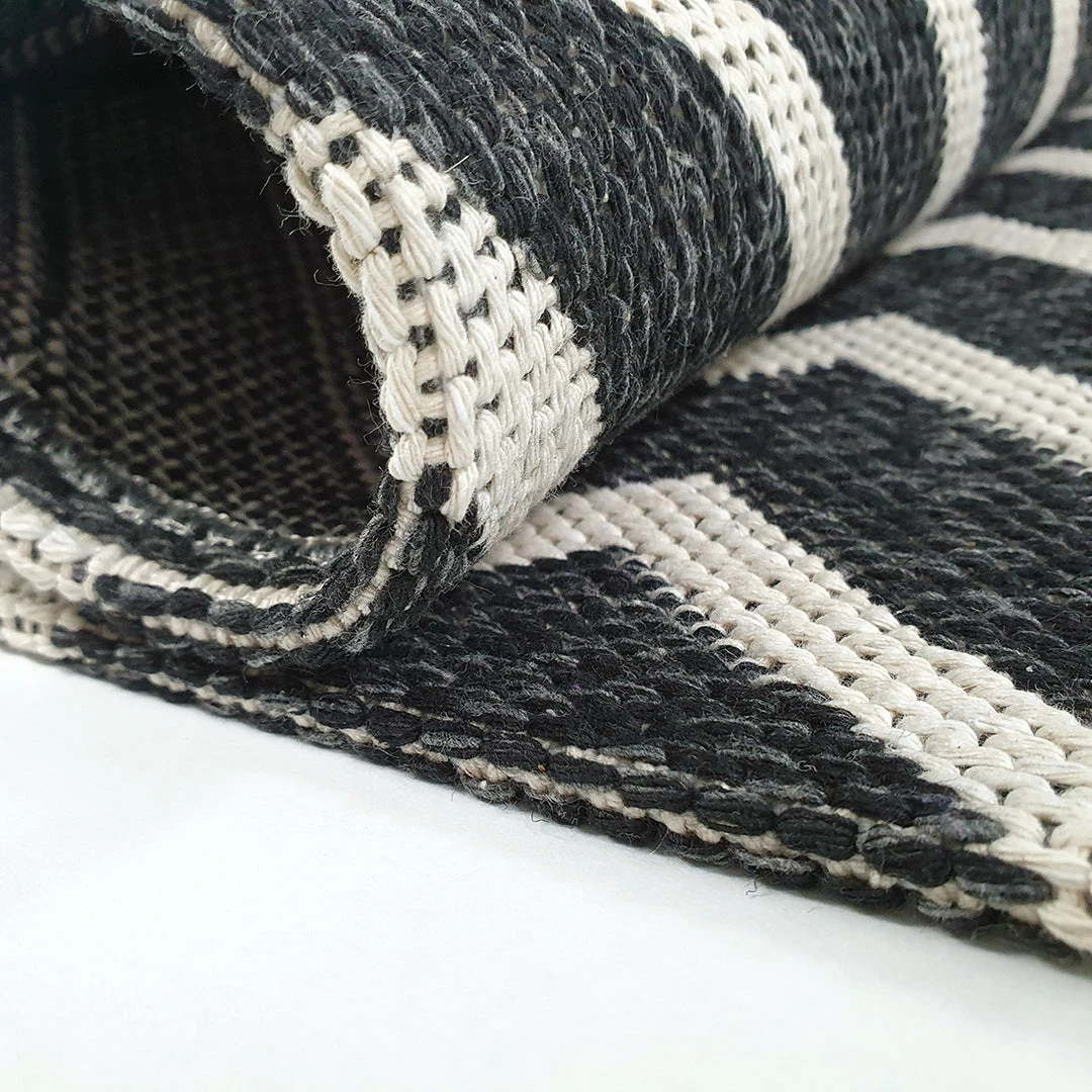 Looking for a modern focal point for your living room, bedroom, kitchen or hallway? Then this contemporary cotton flat pile rug from our current collection is perfect. The colour combination, natural material, exclusive pattern make this flatwoven rug an elegant highlight in any home. It’s a real bargain! Â