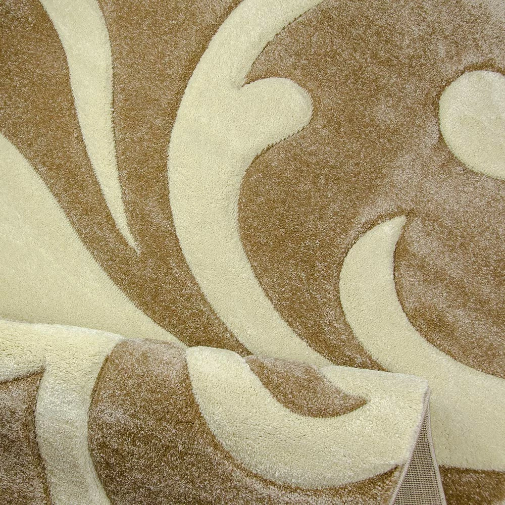 Xrugs Modern Floral Rug Beige Cream Contour Cut Pattern Damask Design Carpet Mat For Living Room & Bedroom