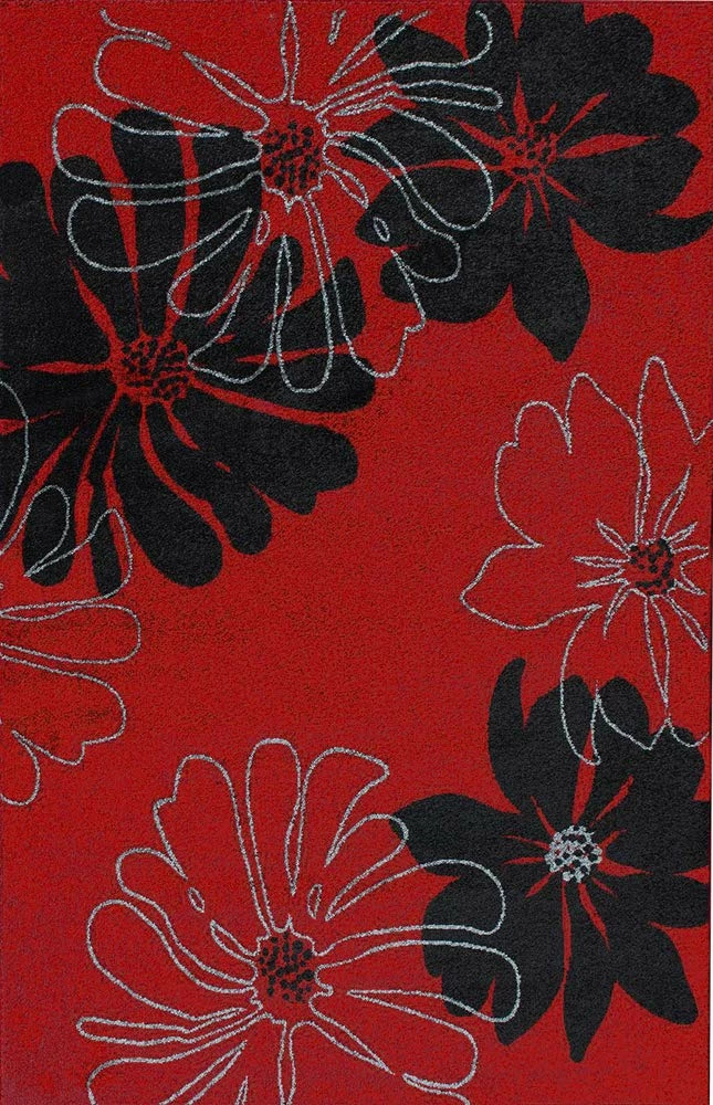 Xrugs Modern Large Red Rug Black Floral Pattern Soft Woven Low Pile Floor Carpet Living Room Or Bedroom