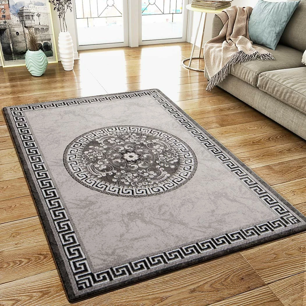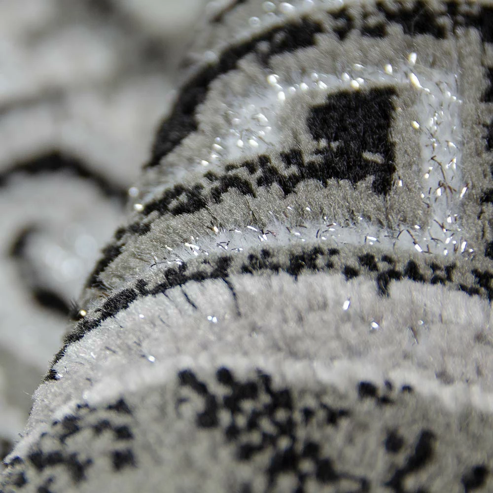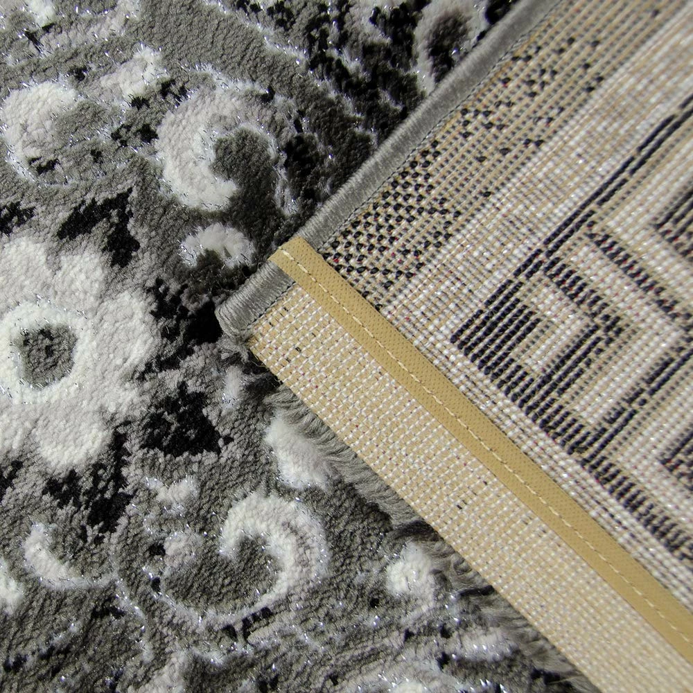 Xrugs Modern Oriental Flaral Pattern Rug Grey Black Shimmer Ornaments Woven Low Pile For Living Room Or Bedroom