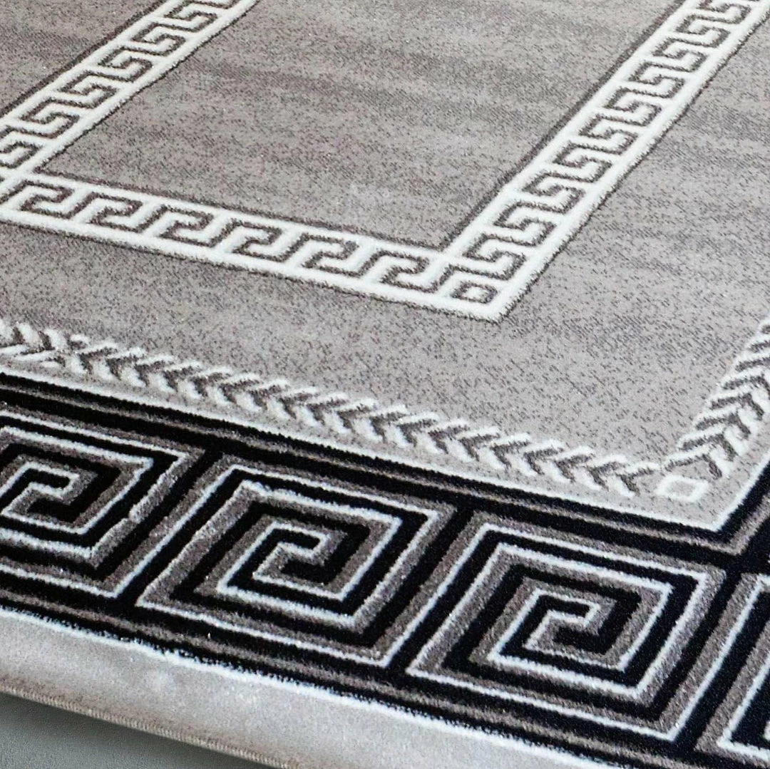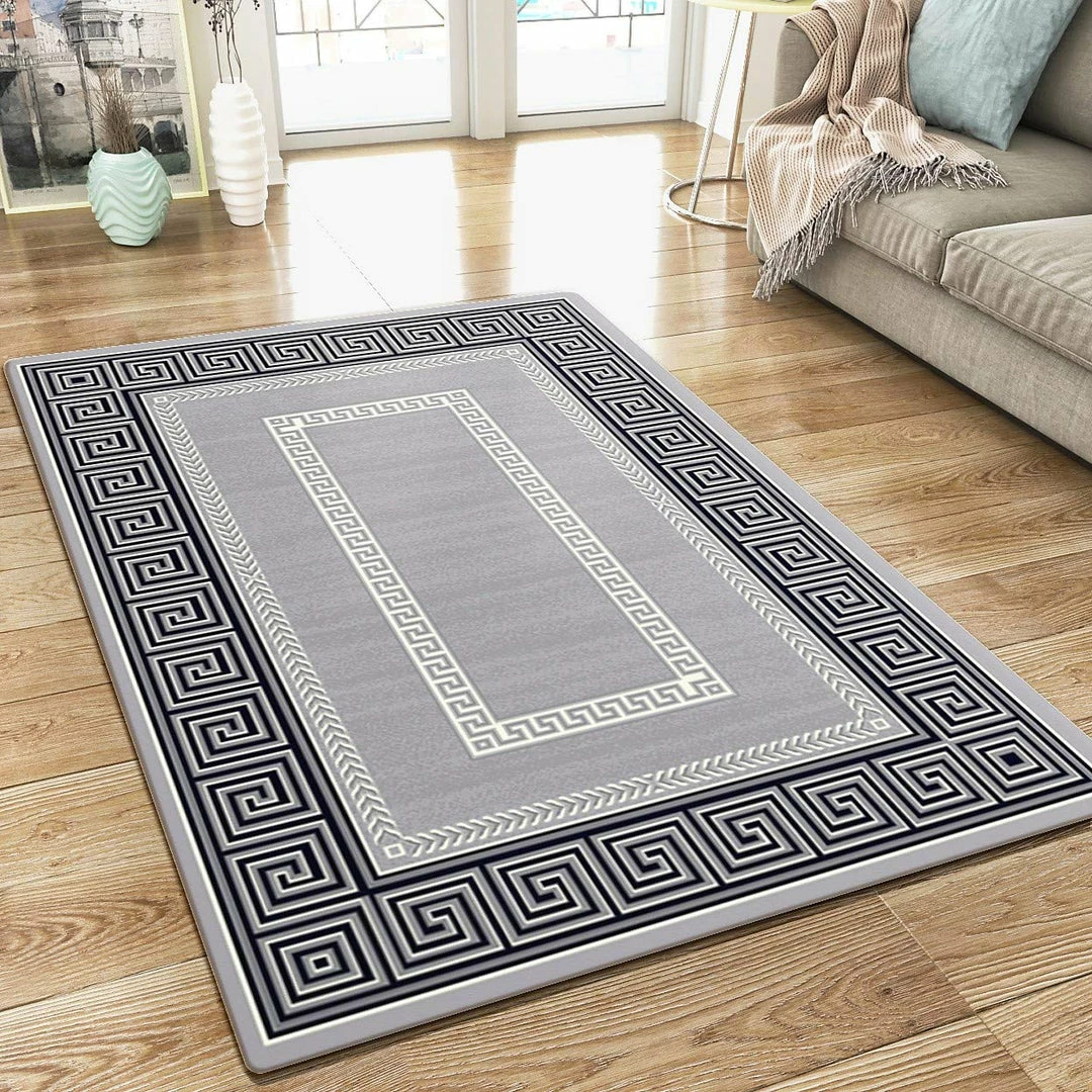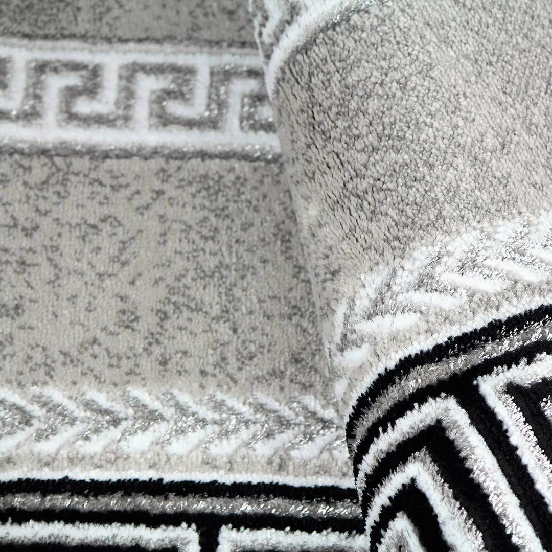 Xrugs Modern Rug Silver Grey Black Border Design Oriental Woven Short Pile Carpet Mat For Living Room & Bedroom