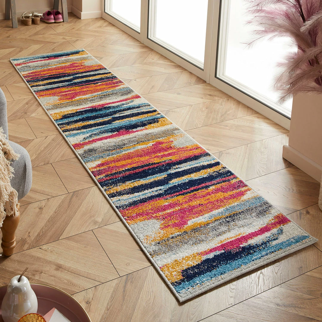 Looking for a modern focal point for your living room, bedroom, kitchen or hallway? Then this designer rug from our current collection is perfect. The colour combination, exclusive pattern, intense colour brilliance and contours created by hand make this woven rug an elegant highlight in any home. Very comfortable and nice to touch. It’s a real bargain!