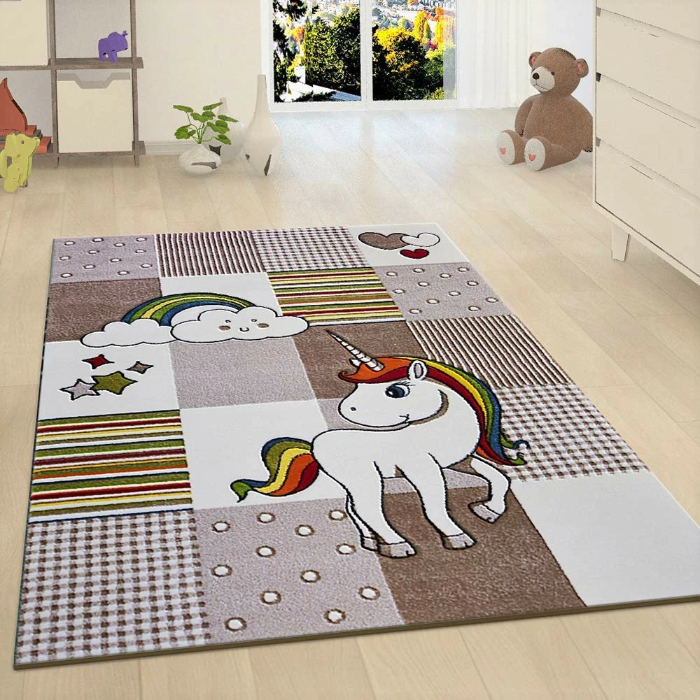 Xrugs Unicorn Rug Kids Children Beige Nursery Carpet Woven Play Room Mat For Baby Girls Boys Bedroom
