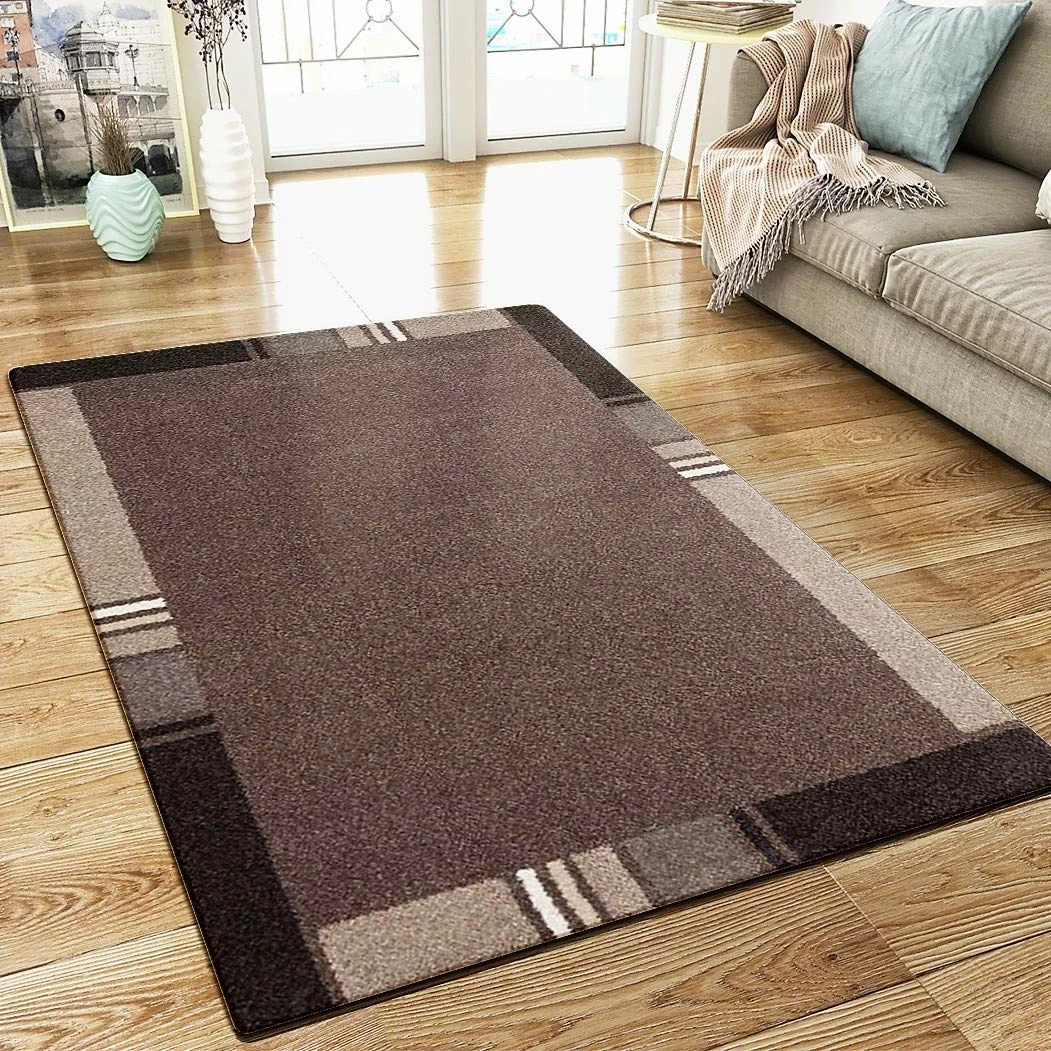 Xrugs XRUG Modern Geometric Rug Border Design Brown Beige Woven Short Pile Carpet Mat For Living Room Or Bedroom