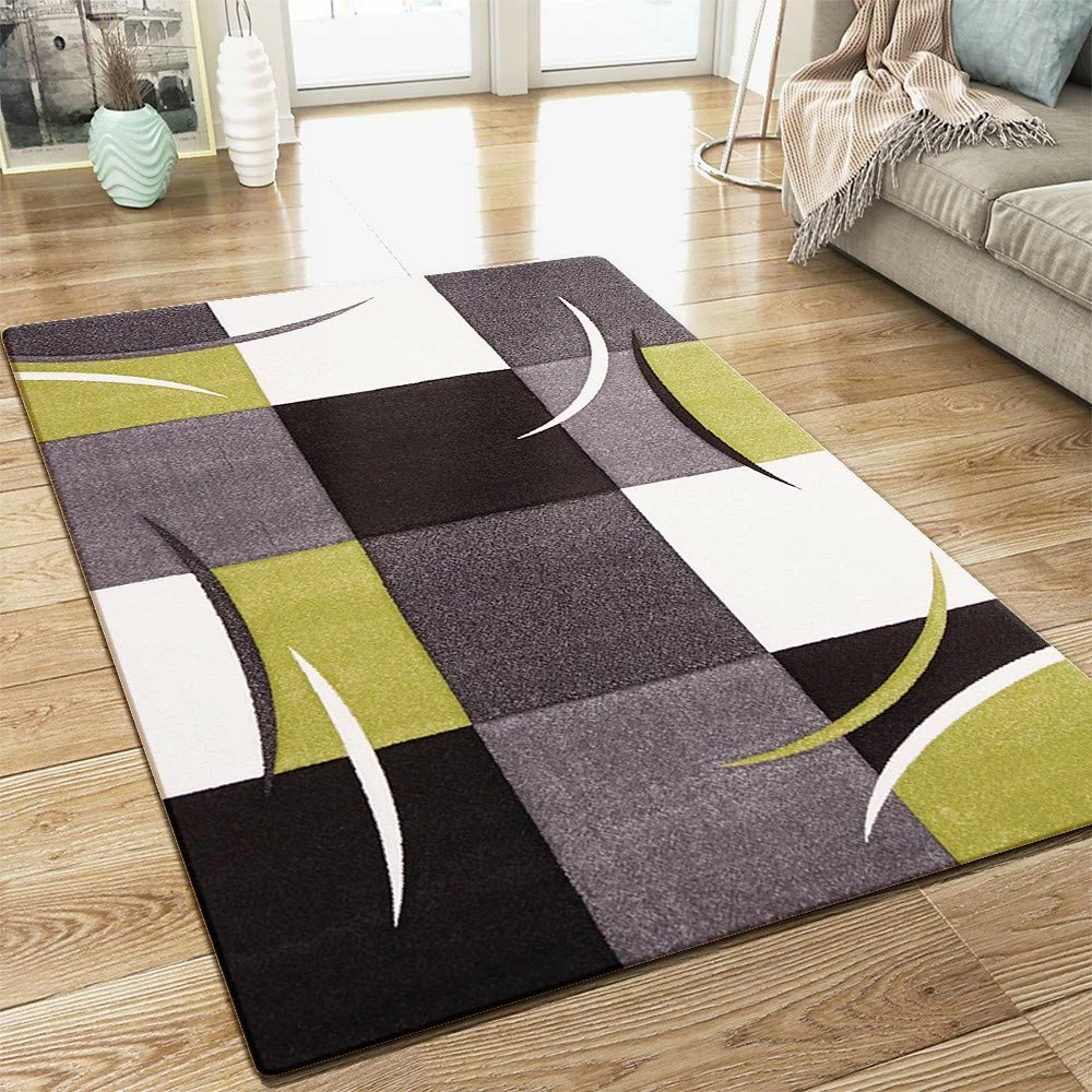 Xrugs XRUG Modern Grey Green Black Rug Checkered Design Contour Cut Woven Low Pile Carpet Mat For Living Room & Bedroom